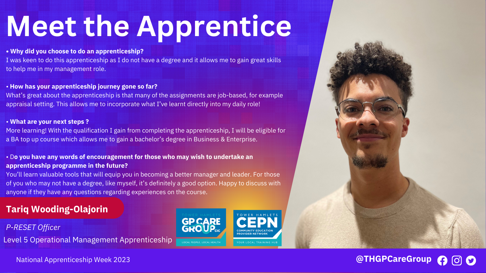- Successfully enrolled over 30 staff across Tower Hamlets Primary care/ community care into apprenticeship programmes.